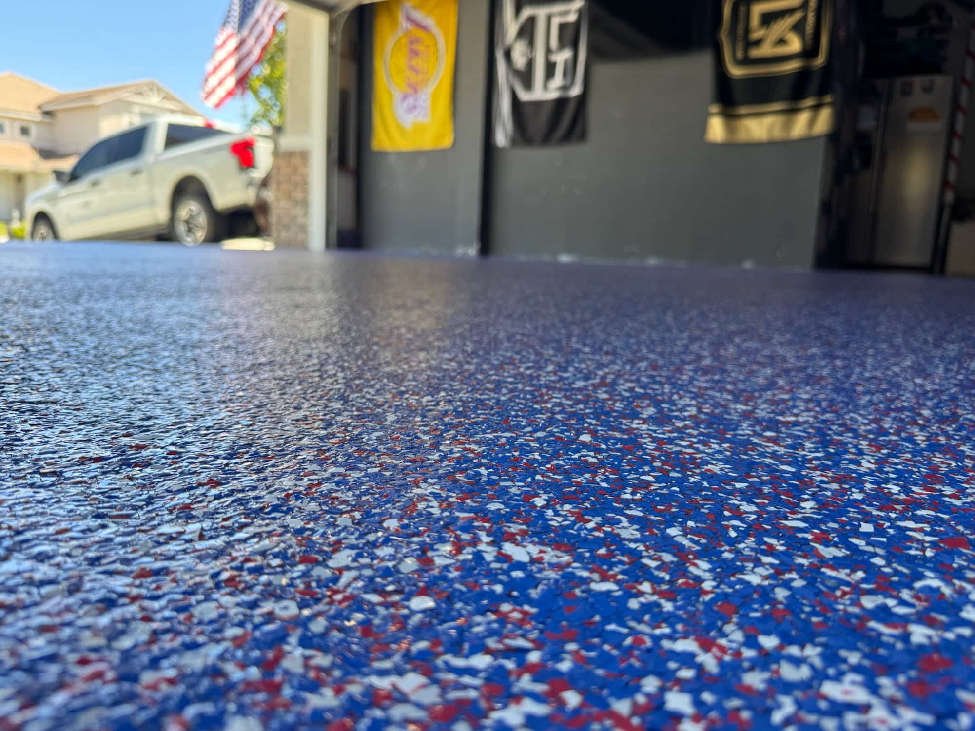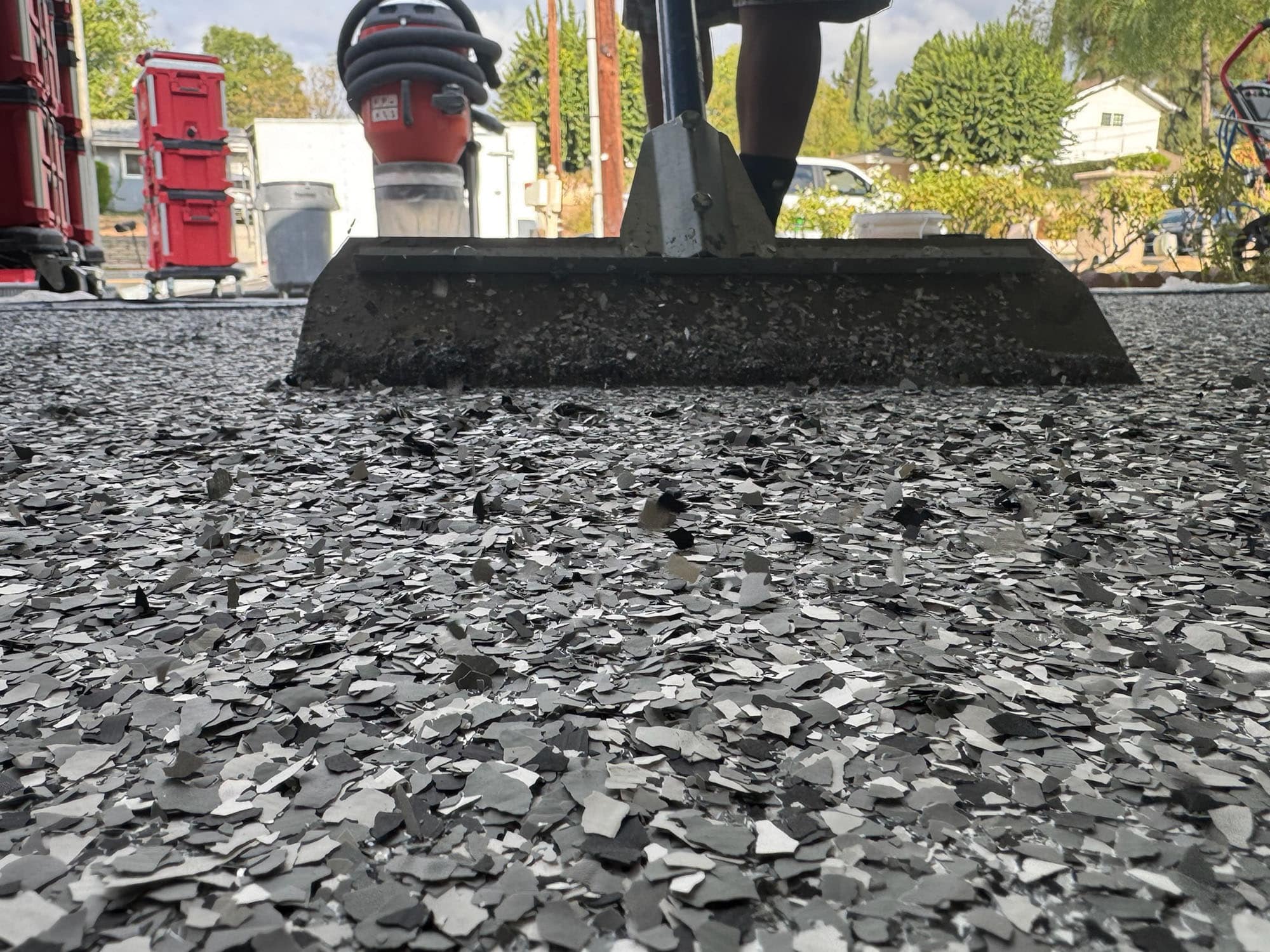 Epoxy flake full broadcast garage floor