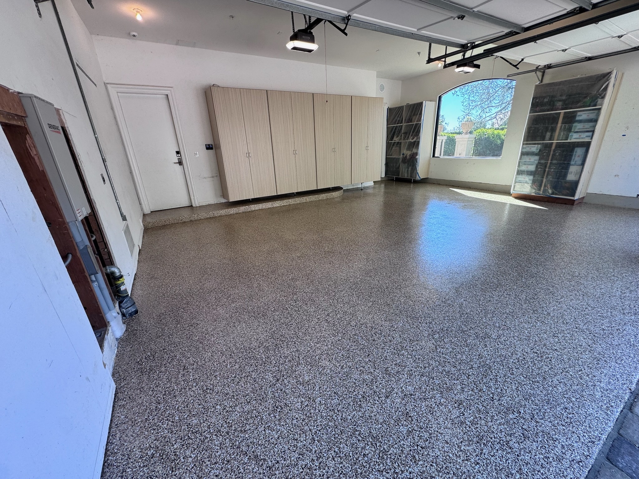 • Garage Epoxy Flooring Transformation in Pacific Palisades – Outback Flake System (2-Day Installation)